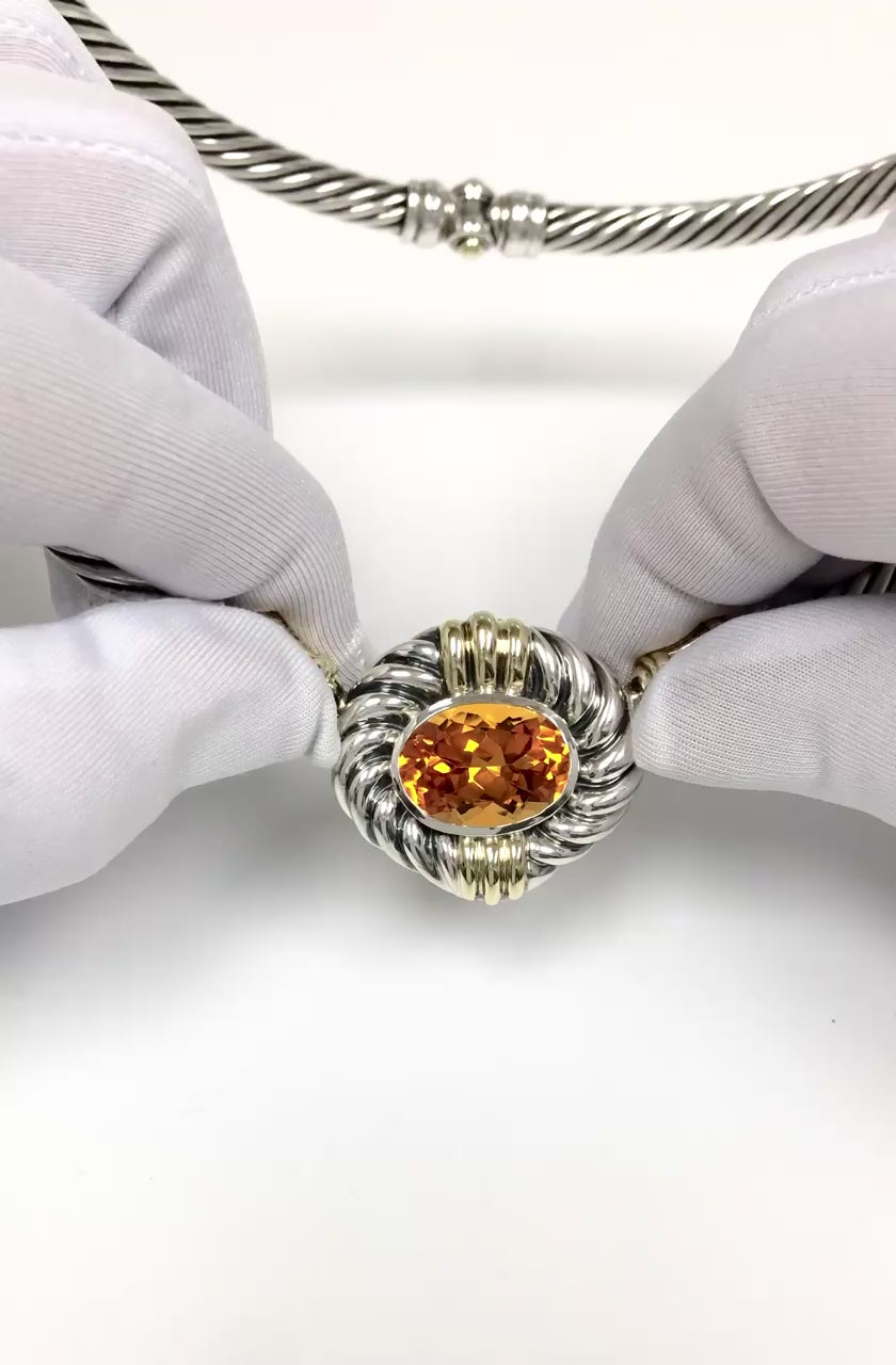 David Yurman Sterling Silver 14K Yellow Gold Cable Necklace Oval Citrine Center