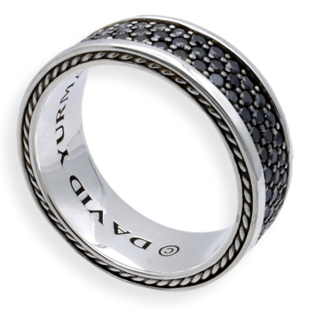 David Yurman Sterling Silver Streamline Pave Black Diamond Wide Band Size 10