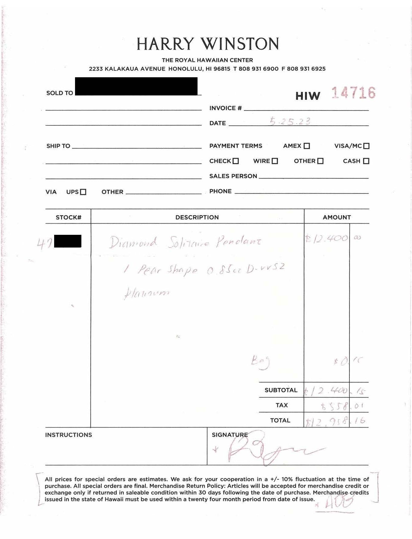 - Harry Winston Receipt