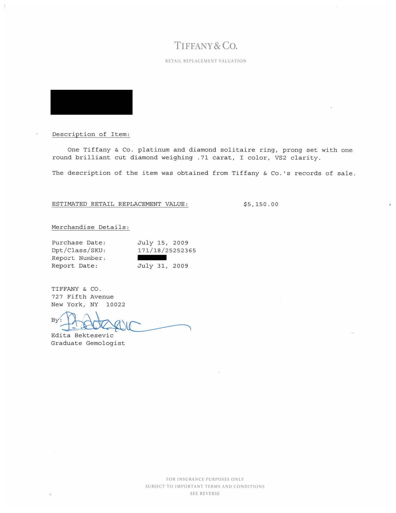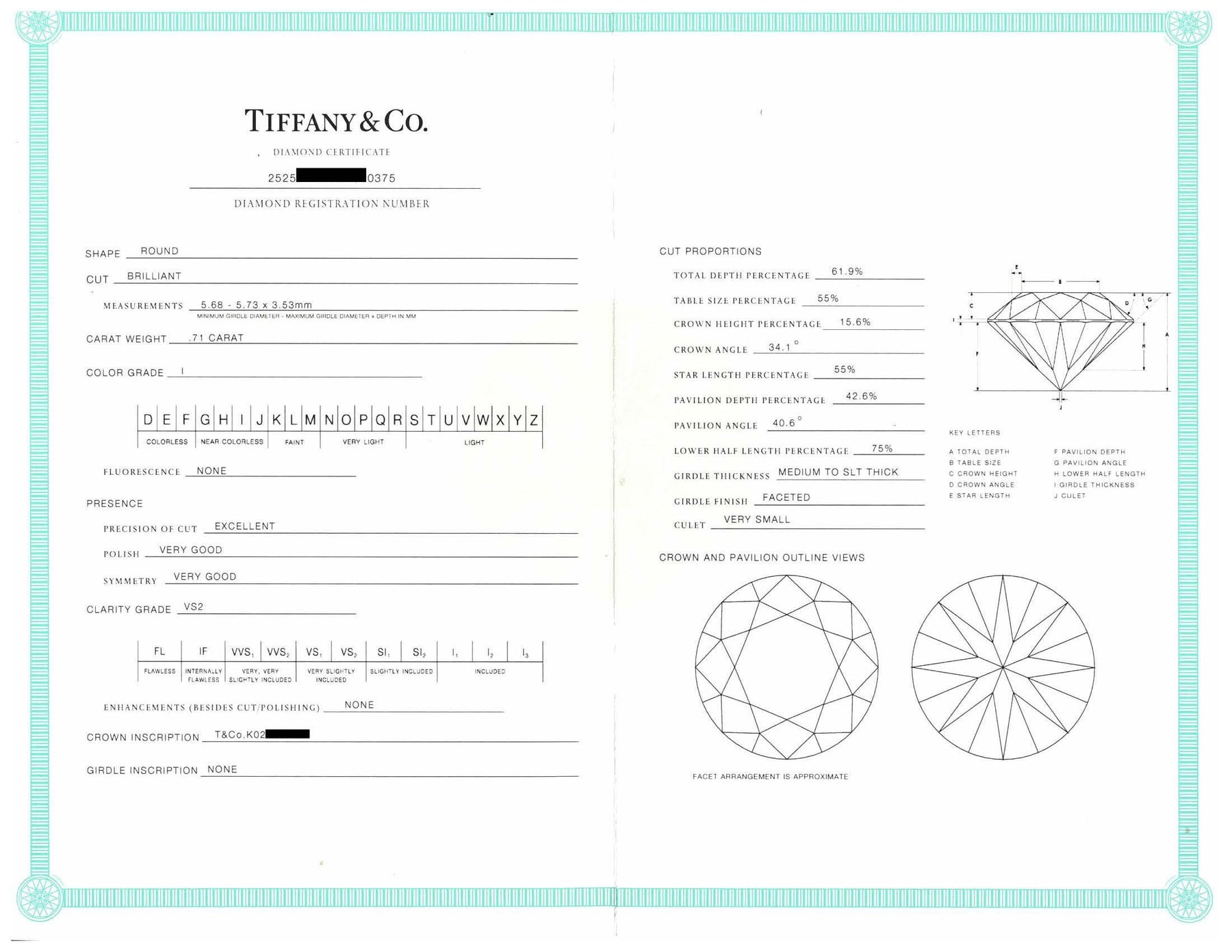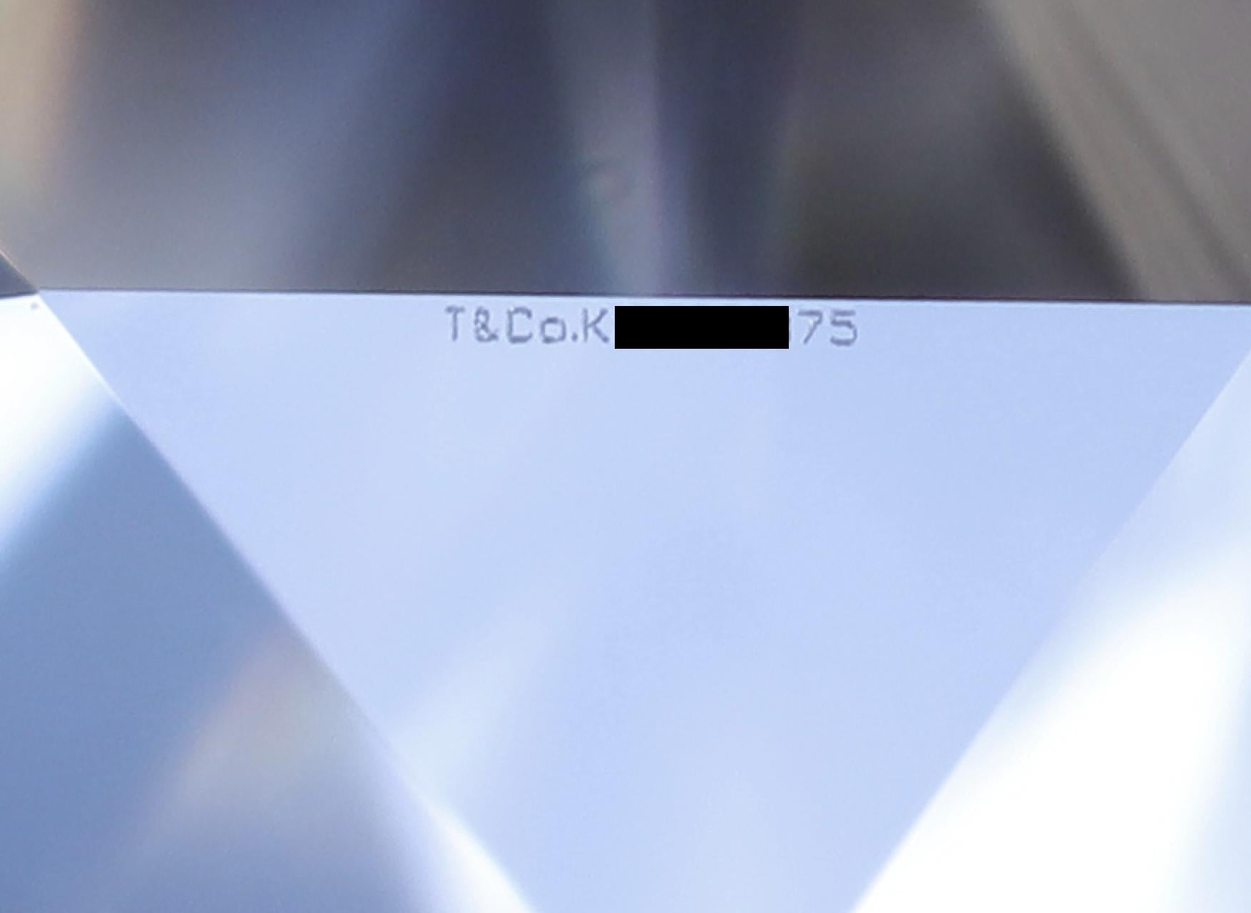 - Hallmarks: © TIFFANY & CO. PT950, .71 CT, Serial Number