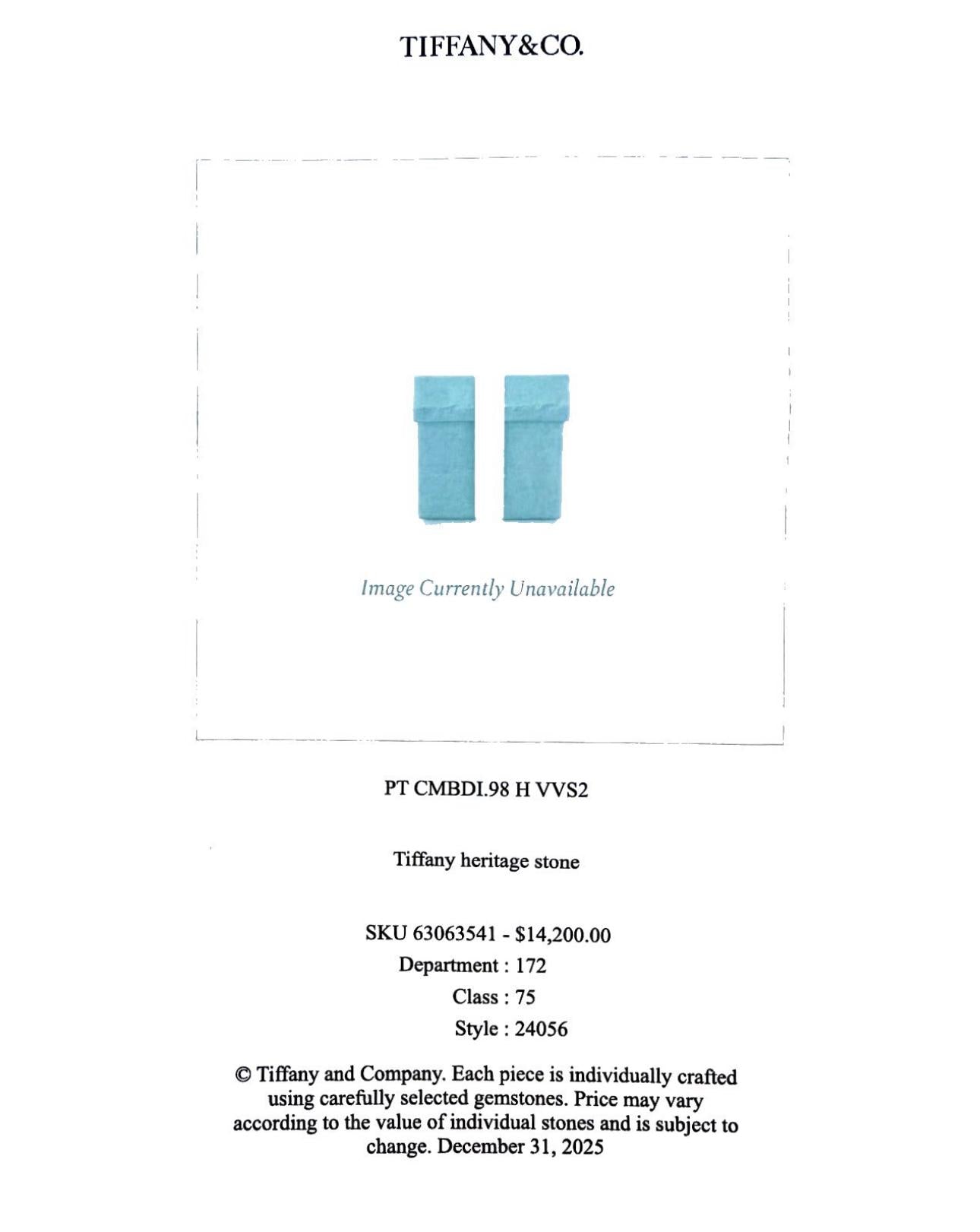 - Hallmarks: © Tiffany & Co., Pt950, Pat D467.833 et al, D 0.98 ct, Serial Number