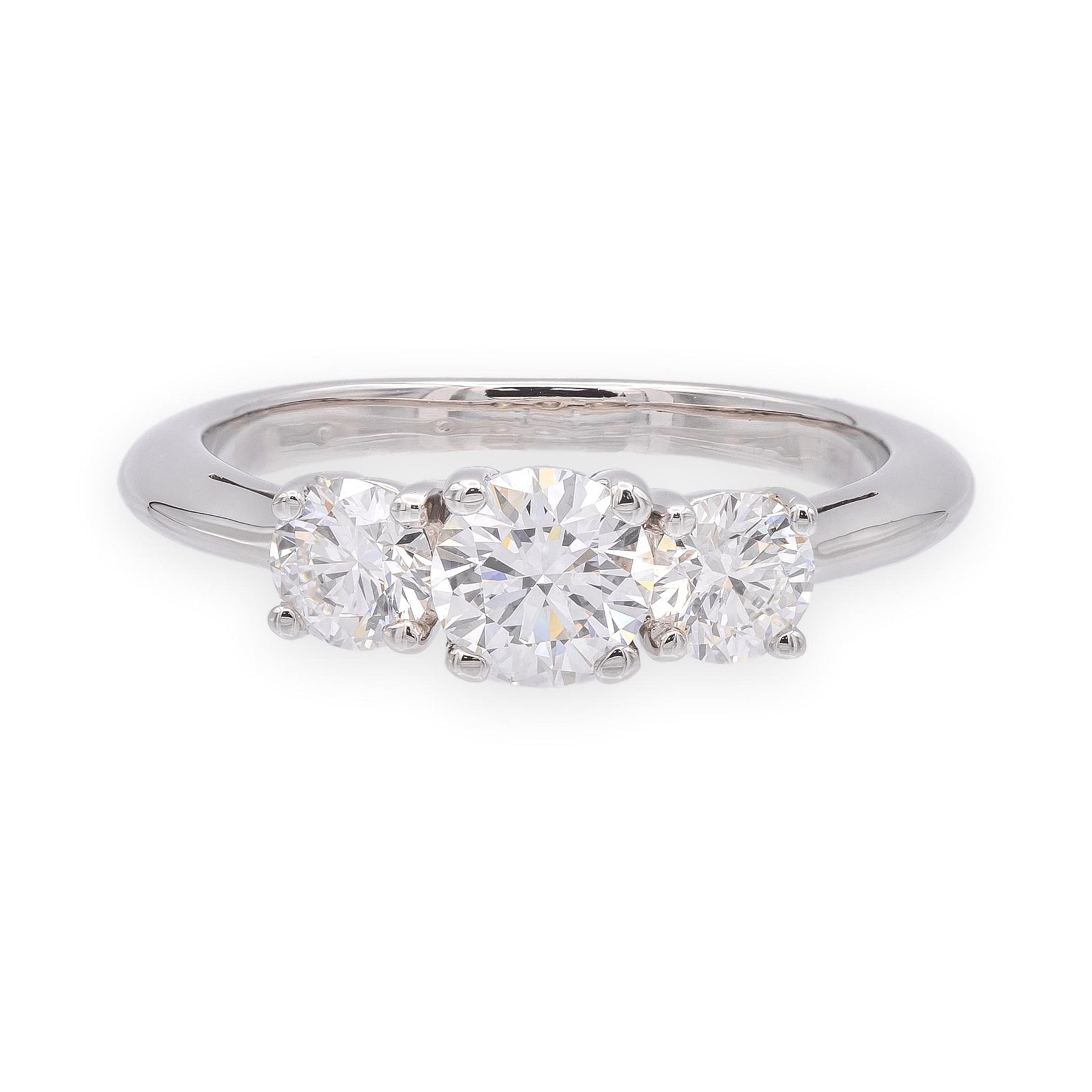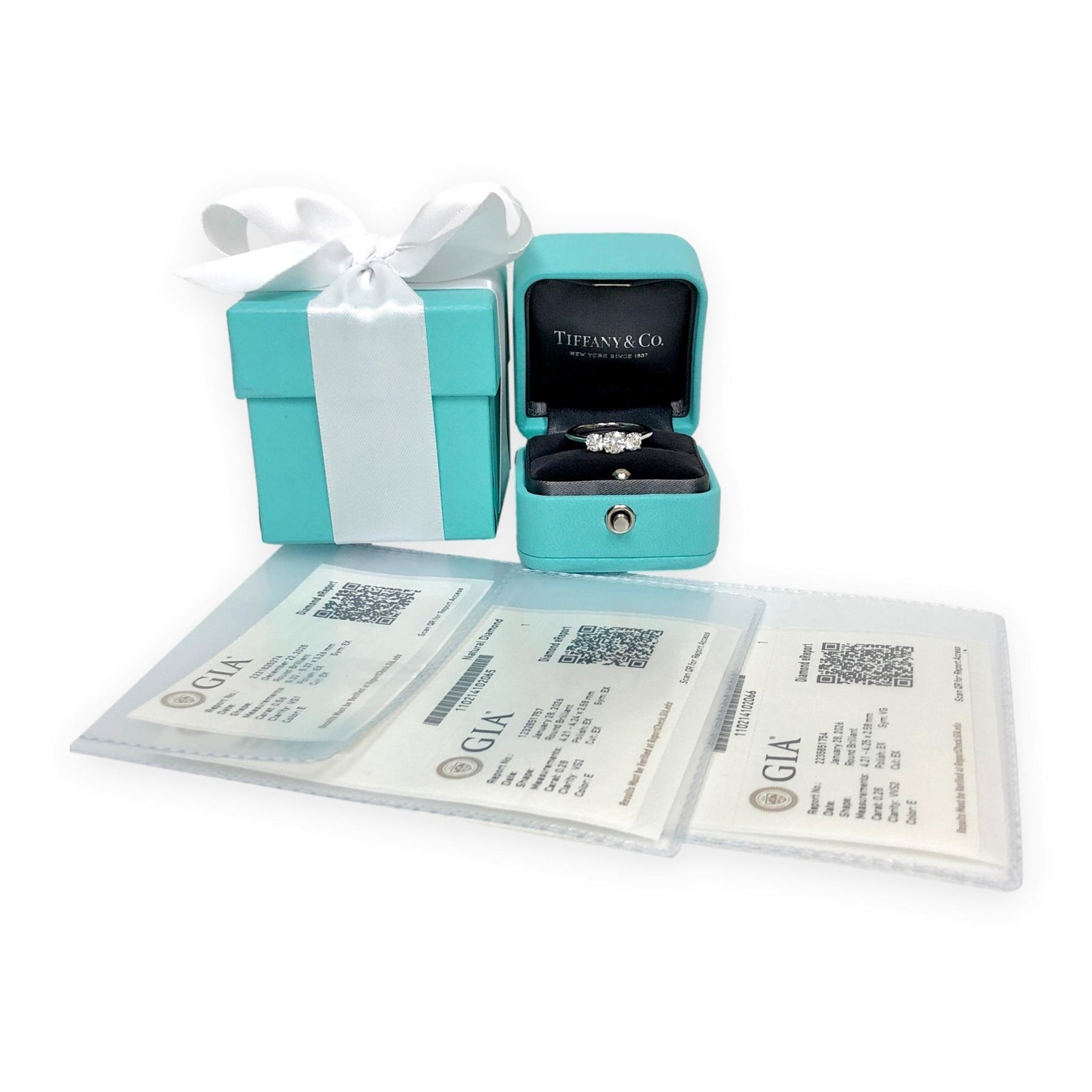 Tiffany & Co. Platinum Three Stone Diamond Engagement Ring 1.12ct Ttl. E VS