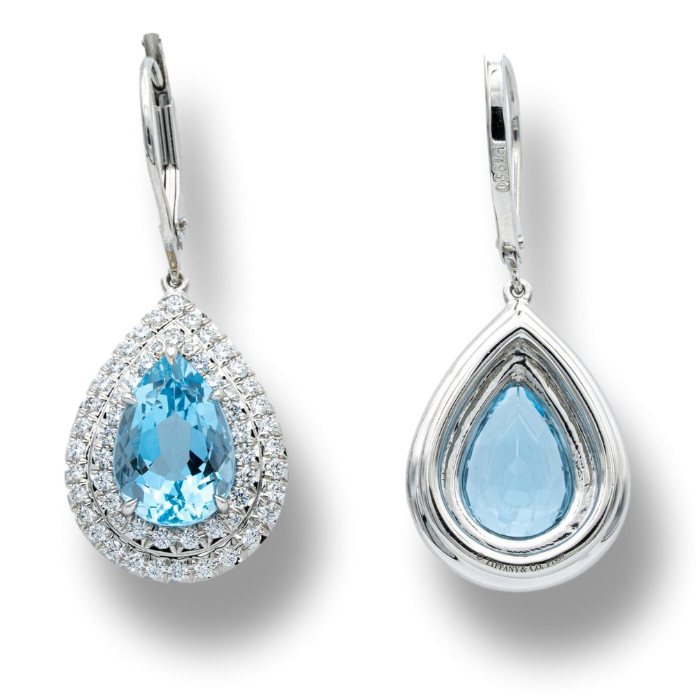 Tiffany & Co. Soleste 3 ct Aquamarine and Diamond Drop Earrings in Platinum