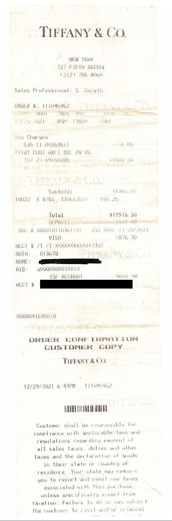 - Hallmarks: © Tiffany & Co., Pt950, Au750, D0.68 CT, d0.33 CT, Serial Number