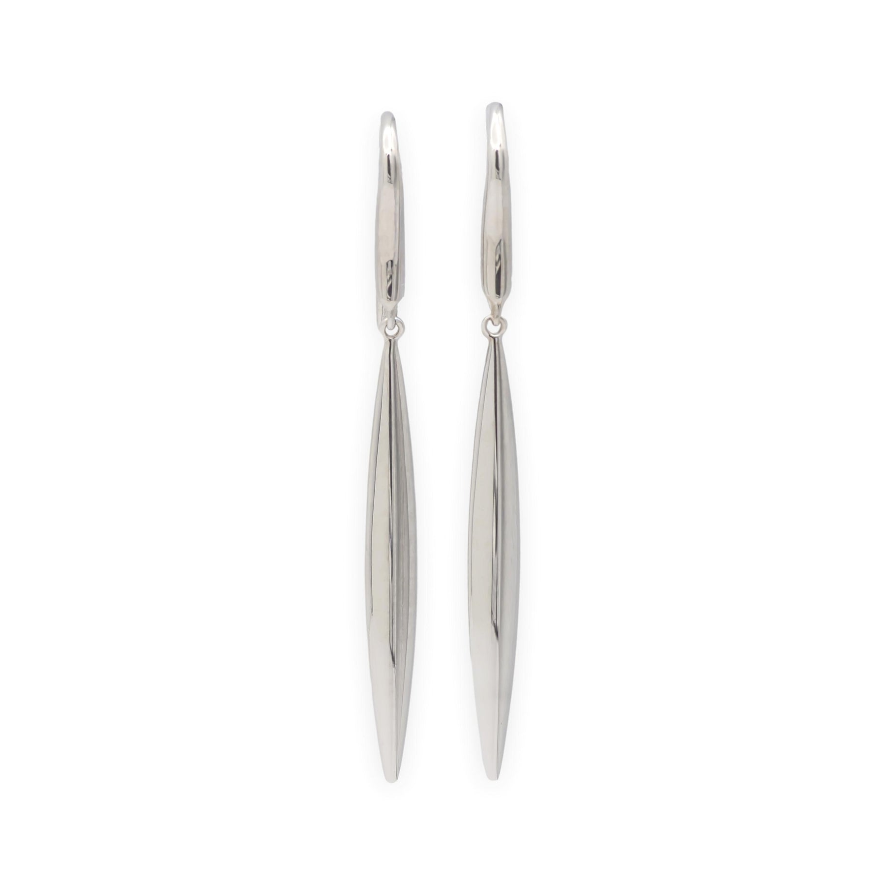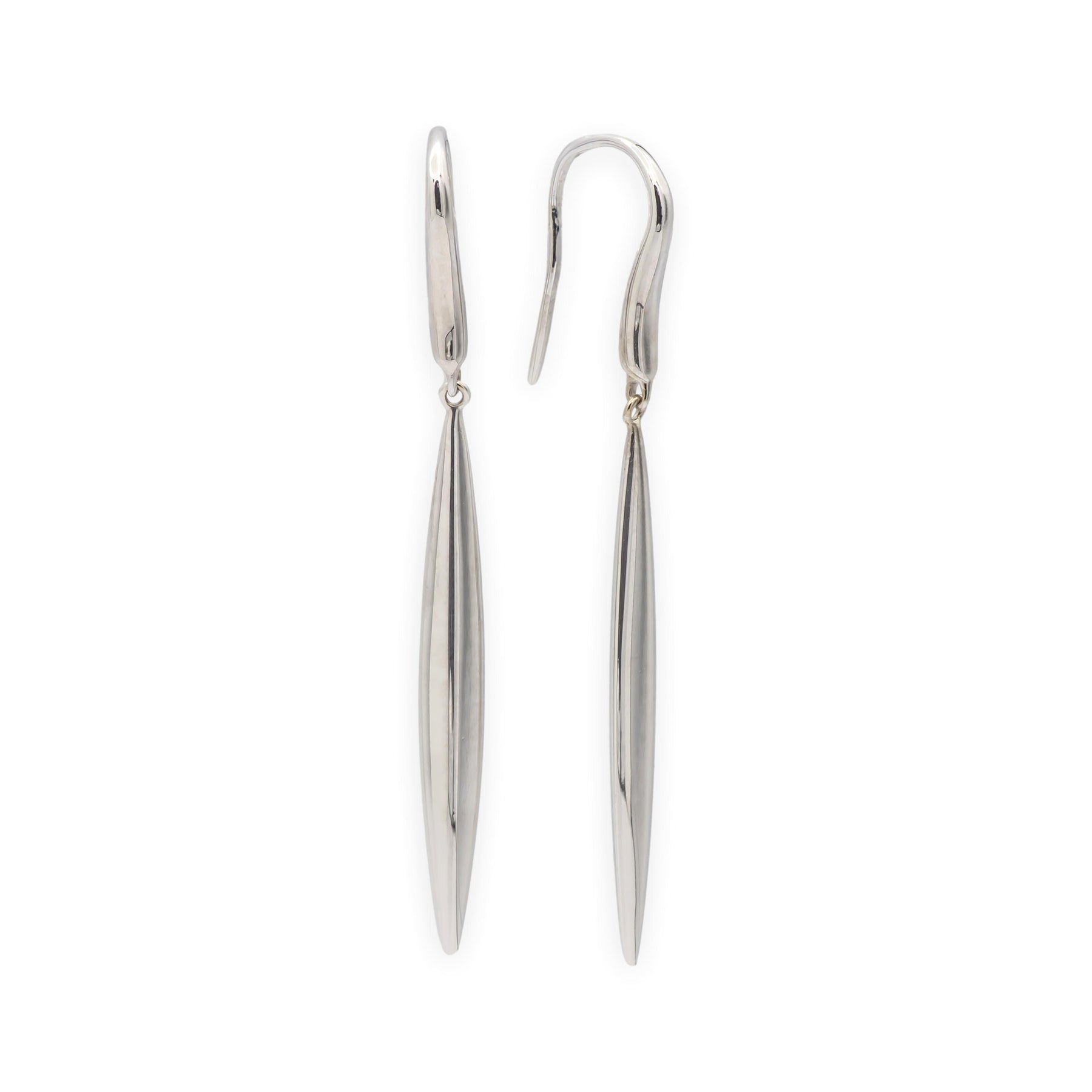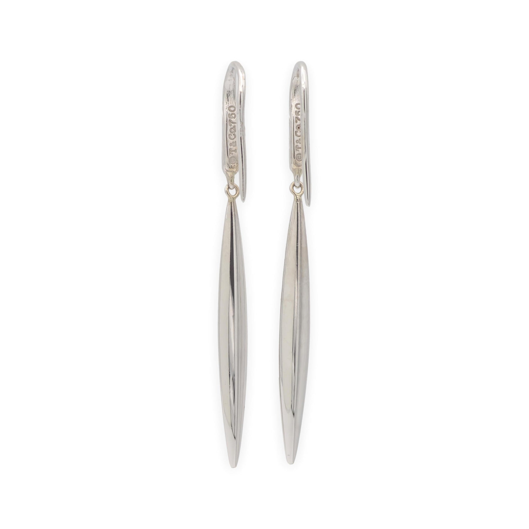 Tiffany & Co. Vintage 18K White Gold Feather Dangle Drop Earrings 2 Inches Long