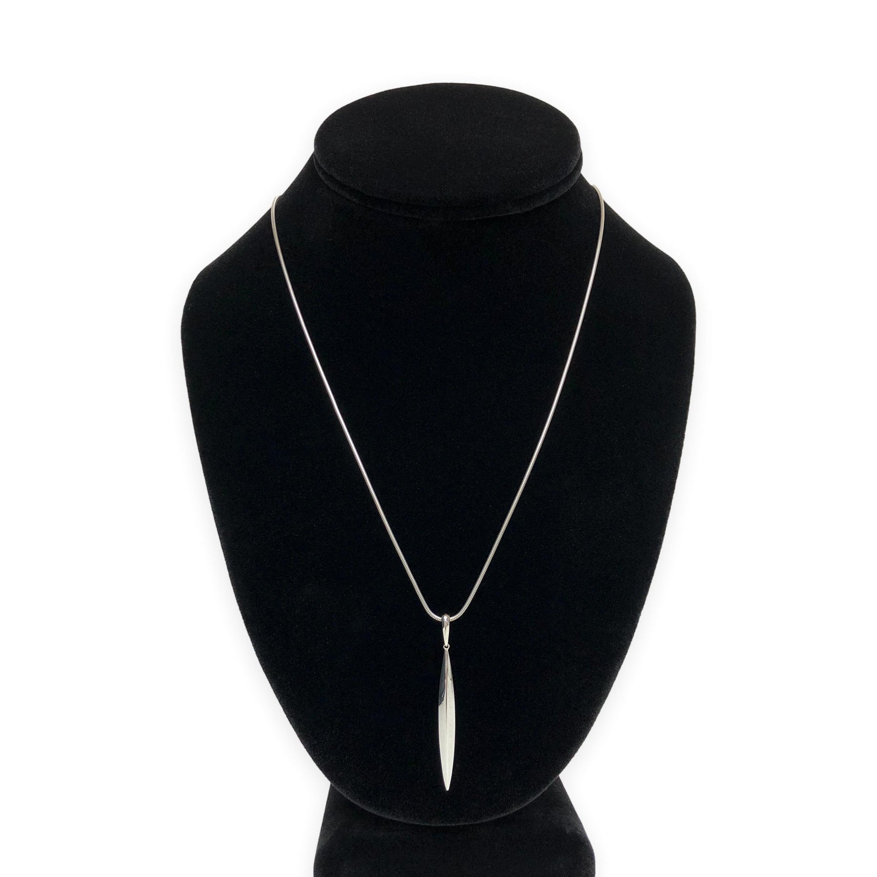 Tiffany & Co Vintage 18K White Gold Feather Pendant 20" Snake Chain Necklace