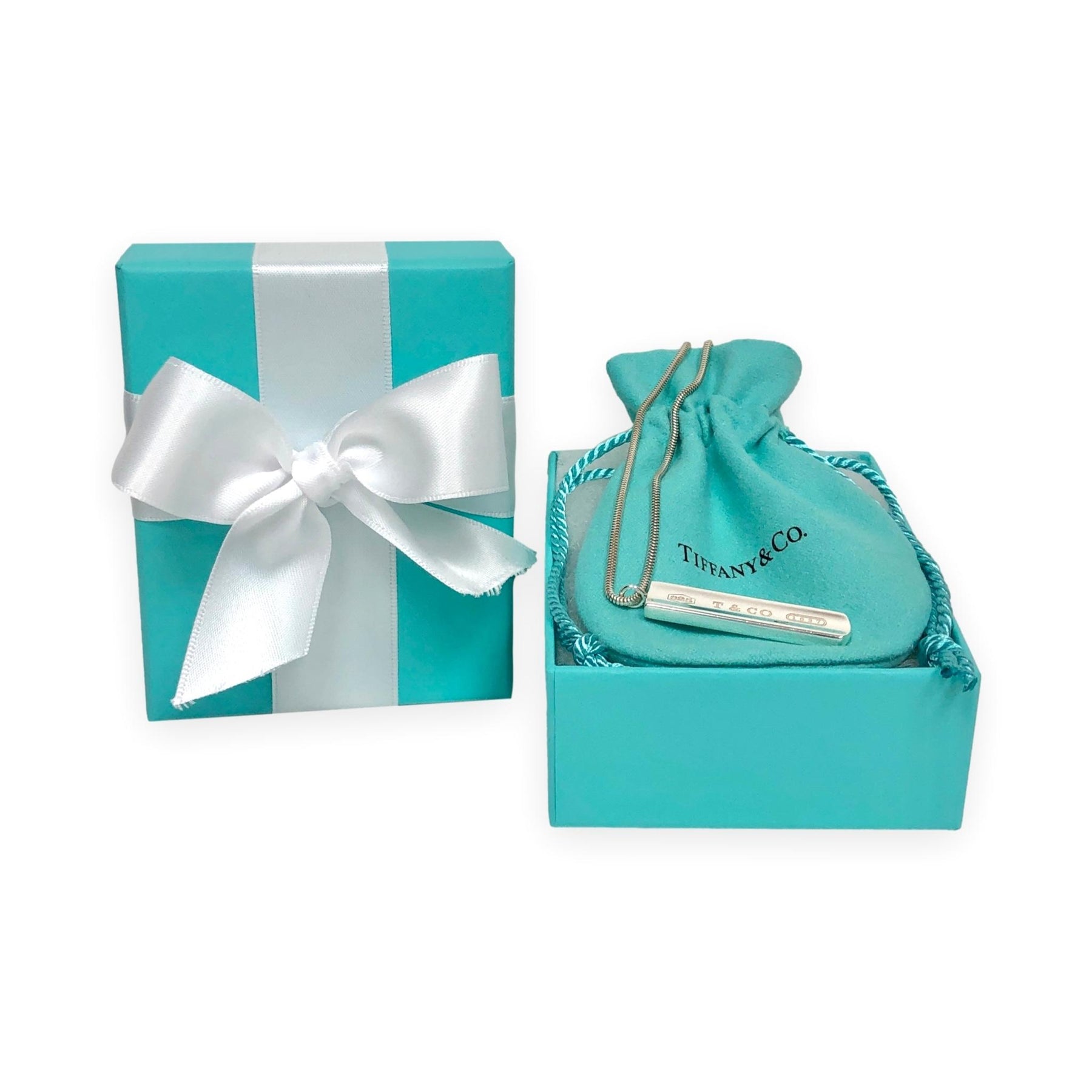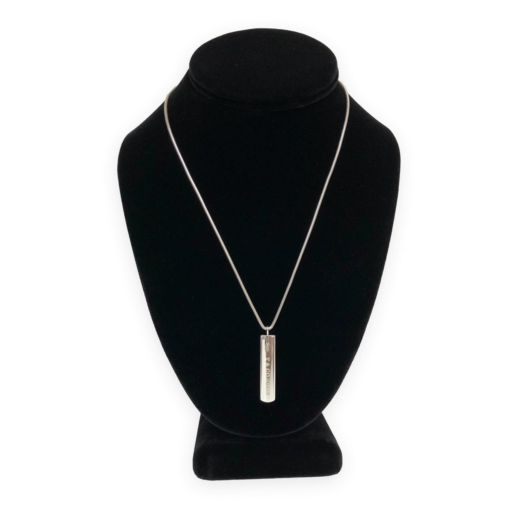 Vintage Tiffany & Co. 1837 Sterling Silver Bar Pendant Necklace on Snake Chain