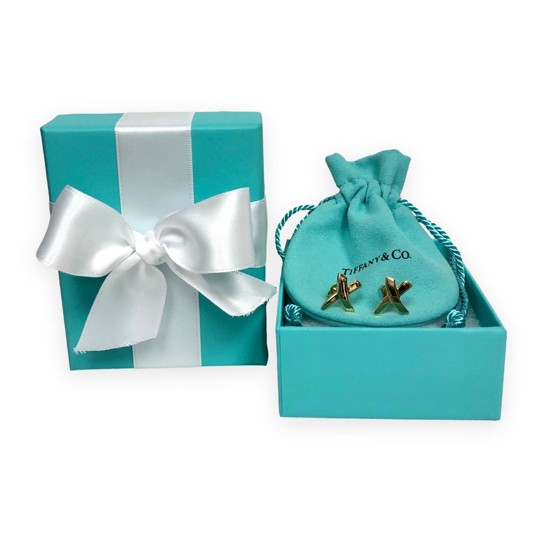 Original Tiffany & Co. box and pouch with white satin ribbon